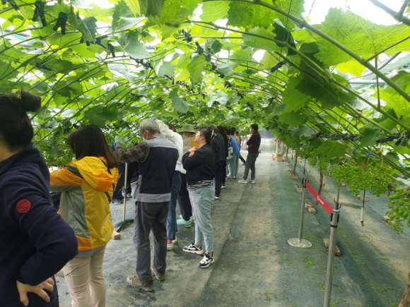 교육은 포도(샤인머스캣)알 솎기 이론 교육 및 실습 교육으로 진행되며, 시는 교육생들이 포도의 생육 상태를 확인하고 알 솎기 실습을 해보며 농작업 현장에서 직접 기술을 활용할 수 있도록 교육 과정을 수립했다.