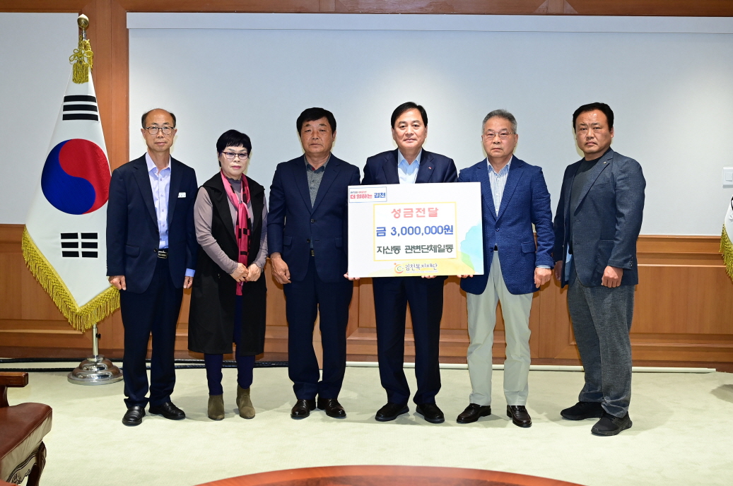 이날 기부된 성금은 나눔문화 확산을 위해 각 단체 회원들이 자발적으로 십시일반 모아 마련했으며, 자산동 단체장과 박종기 자산동장 등 5명이 직접 방문하여 김천복지재단에 성금을 전달했다.