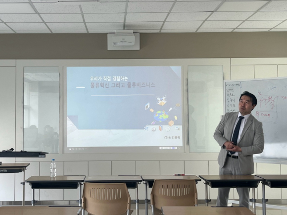 이날 강연에는 유통조사분석 및 유통기업분석 연구원과 물류유통 컨설턴트 경력을 지닌 장안대학교 물류유통학부 김종락 교수가 나서 ‘우리가 직접 겪고 있는 물류혁신 그리고 물류 비즈니스’를 주제로 특강을 진행했다.