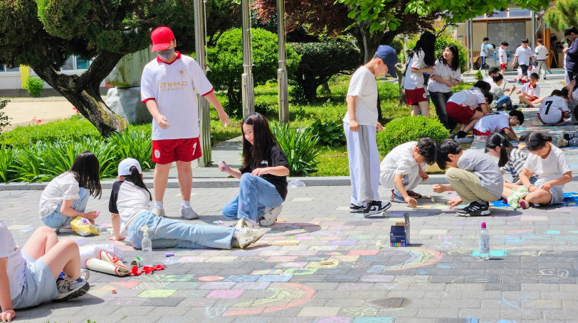 3~4학년 학생들은 운동장 주변 보도블럭에 야외용 워셔블 분필을 사용하여 그림을 그리며 창의력을 발휘하고, 커피박 씨드밤을 활용한 게릴라 가드닝 활동을 통해 자연과의 소통을 경험하였다.