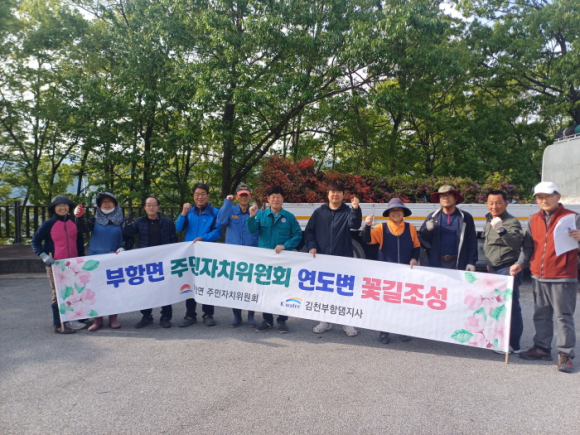 | 김천시 부항면 주민자치위원회(회장 이영수)는 지난 4월 25일 부항면 주민자치위원회 회원 20명과 각 마을의 주민이 참여한 가운데 부항댐 주변 및 각 마을에 꽃길을 조성했다.