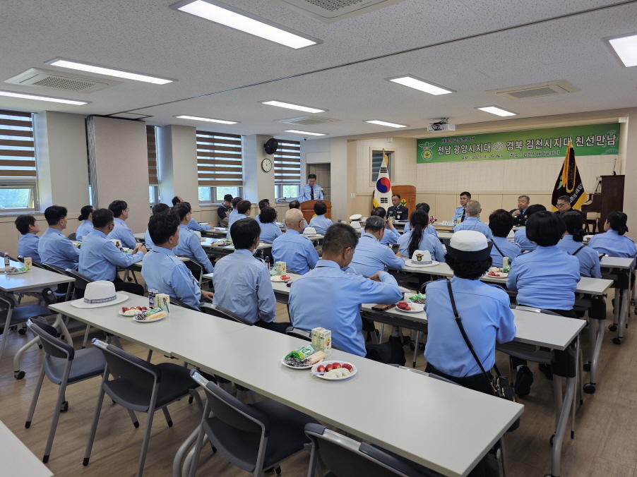 | 새마을교통봉사대 김천시지대는(대장 김동배)는 지난 4월 26일 김천시새마을회관에서 영·호남 지역 간의 교류를 강화하고 지속적인 화합을 도모하기 위해 전라남도 새마을교통봉사대 광양시지대와 친선 교류 서약식을 가졌다.