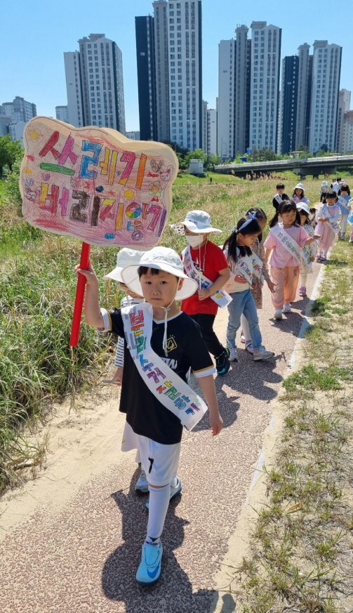 유아들은 “율곡천이 깨끗해지니까 기분이 좋아요”, “이제부터 분리수거도 잘 할거예요. 지구야~ 고마워 우리가 지켜줄게”라며 앞으로의 다짐도 이야기 하였다,