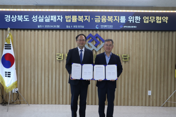 | 경북신용보증재단(이하‘재단’)이 대한법률구조공단·신용회복위원회와 「경상북도 성실실패자 금융복지를 위한 업무협약」을 체결했다.