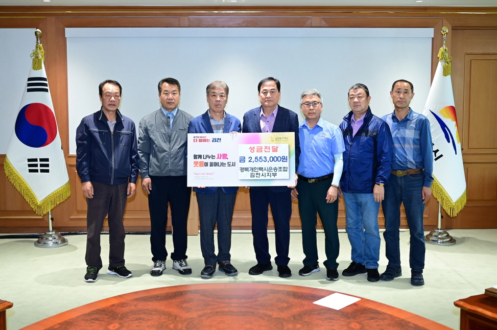 이번 성금은 김천시 개인택시 기사들이 연대하여, 피해 지역의 빠른 복구를 기원하고 이재민들에게 위로의 손길을 건네기 위해 십시일반 모은 성금으로, 경북사회복지공동모금회를 통해 피해 복구 지원에 사용될 예정이다.