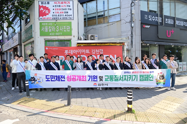 | 김천시(시장 배낙호)는 4월 30일 신음동 이마트사거리에서 도민체전 성공 개최 기원 및 교통질서 지키기 캠페인을 전개했다.