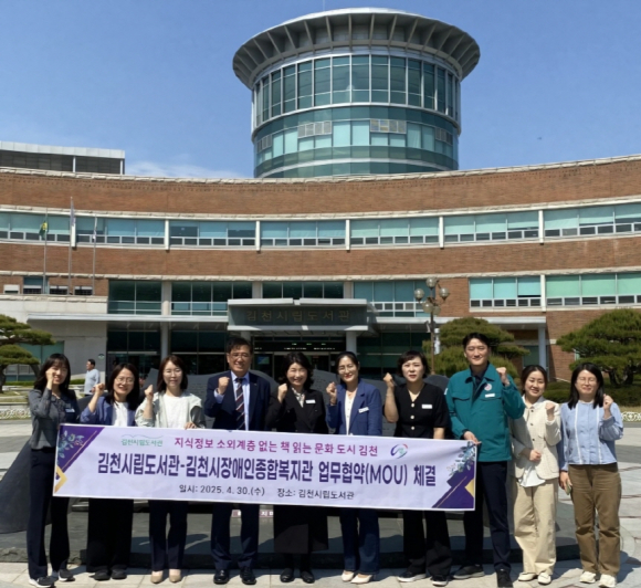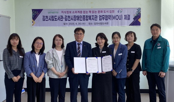 | 김천시립도서관(관장 이순영)과 김천시장애인종합복지관(관장 안민)이 지난 4월 30일 지식정보 취약계층 없는 책 읽는 문화 도시 김천을 위해 업무협약을 체결했다.
