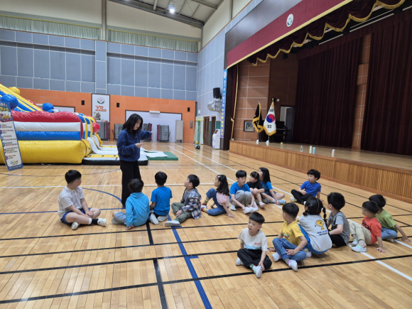 안전한 놀이를 위하여 준비운동을 실시하고 에어바운스 이용 시 지켜야 할 약속을 이야기 나누었다.