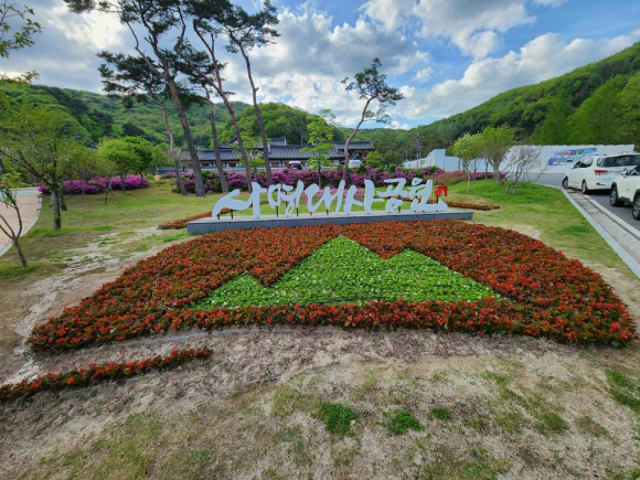 첫 번째 화단은 입간판 앞 부지에 마련되었다. 이곳에는 김천시의 로고를 형상화한 자수 화단이 조성되었으며, 식재된 베고니아는 붉은색과 분홍색이 어우러져 강렬한 시각적 포인트를 제공한다. 이는 입간판과 동시에 방문객의 시선을 사로잡고 있어 포토존으로 자리매김할 전망이다.