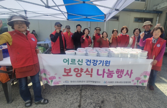 이번 보양식 나눔 행사는 어버이날을 앞두고 한국수자원공사 부항댐지사의 지원을 받아 실시됐으며, 지례면 어르신들이 건강하게 장수하시길 바라는 마음을 담아 협의체 위원들이 정성스럽게 전복죽을 준비했다.