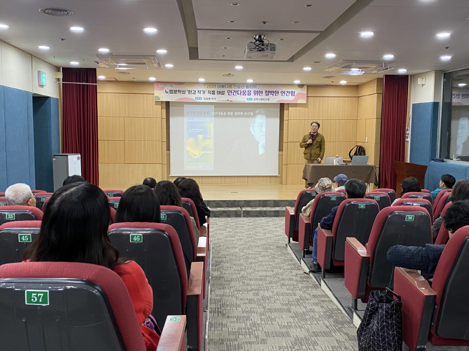 | 김천시립도서관은 지난 4월 29일과 5월 7일 2차시에 걸쳐 중장년층 및 은퇴 세대의 시민을 대상으로 「2025년 1학기 아름다운 신중년 컬리지」 6교시 강연을 성황리 개최했다.