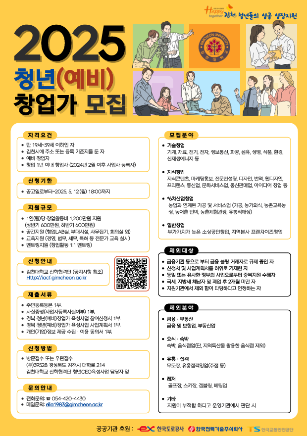 | 김천대학교(총장 윤옥현) 청년 CEO 사업단(단장 홍상민)이 김천시가 주관하는 ‘2025년 경북 청년(예비)창업가 육성사업’ 수행기관으로 7년 연속 선정되었다.