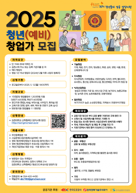 이 사업은 잠재력 있는 창업 아이템을 보유한 지역 청년을 발굴·지원해 창업 성공률을 높이고 일자리를 창출하기 위한 김천시의 대표 청년 창업 프로젝트다.