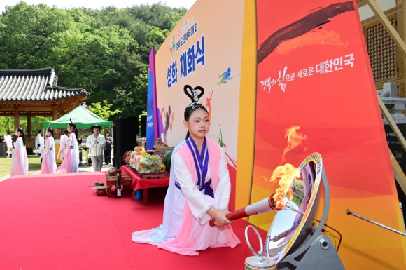 경북도민의 열정과 도전, 화합을 상징하는 성화의 불꽃은 대회 개막일인 9일 종합스포츠타운에 도착하여 제63회 경북도민체육대회 개막의 불을 밝히게 된다.
