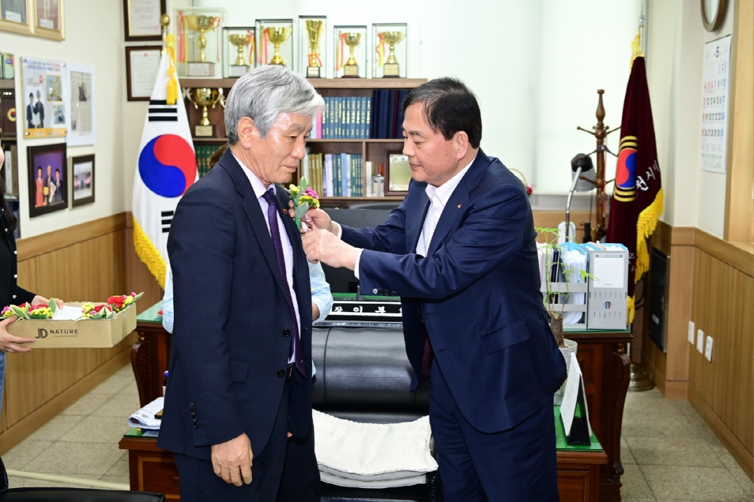 이날 방문에는 배낙호 시장과 나영민 김천시의회 의장이 함께했으며, 이부화 대한노인회 김천시지회장을 비롯한 노인회 회장단에게 직접 카네이션을 달아드리고 건강과 안부를 여쭈었다.