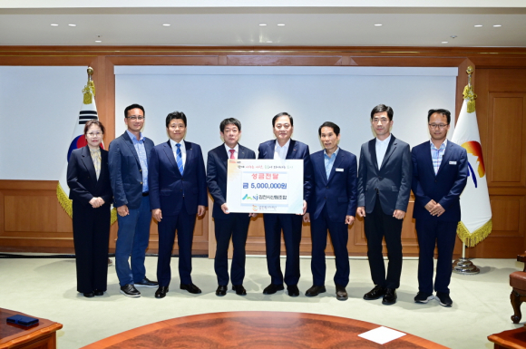 | 김천시산림조합은 5월 9일, 지역 내 어려운 이웃을 돕기 위한 성금 500만 원을 김천복지재단에 전달했다.