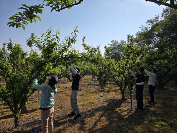 | 김천시 상하수도과는 지난 5월 14일 농소면 연명리에 있는 자두 농가를 방문해 자두 알 솎기(적과)에 일손을 보탰다.
