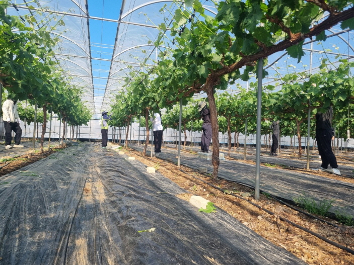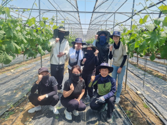 이날 봉사에는 평화남산동 직원 8명이 참여해 약 1,200평 규모의 포도밭에서 순 따기 작업을 도왔다. 작업에 참여한 직원들은 구슬땀을 흘리며 일손 부족으로 힘들어하던 농가에 큰 힘을 보탰다.