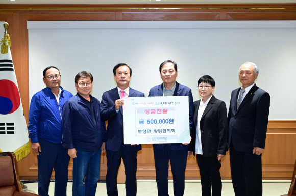 부항면 체육회와 방위협의회는 김천의 어려운 이웃에게 보탬이 되고자 이번 성금 기부를 추진했으며, 부항면 체육회와 차춘화 부항면 체육회장이 각 100만 원, 부항면 방위협의회와 오연택 부항면 방위협의회장이 각 50만 원을 모금했다.