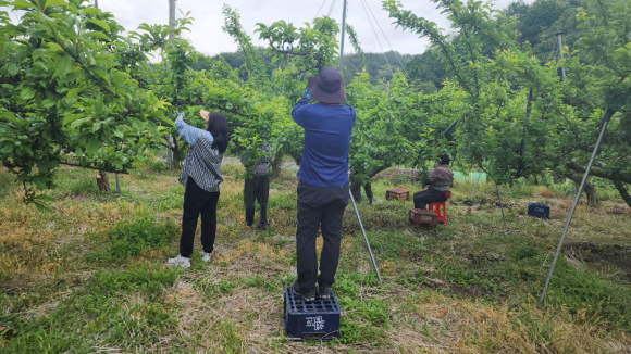 자두 재배 농가주 김모 씨는 “농촌 어디나 인력 부족으로 품삯을 주더라도 인력 구하기가 쉽지 않은 요즘, 면 직원들의 일손 돕기가 큰 도움이 되었다.”라며 고마운 마음을 표했다.