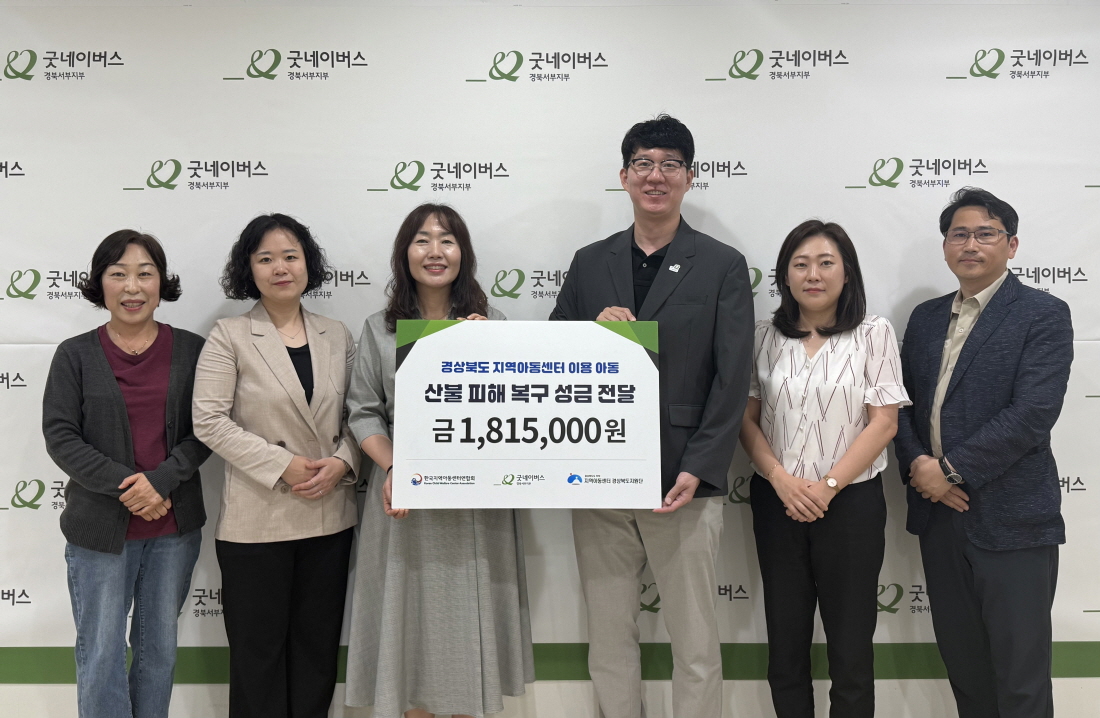 이날 전달된 성금은 지역아동센터 경북지원단을 통해 경북 북부 지역 산불로 큰 피해를 입은 영덕군 지역아동센터로 전달되어 소속된 피해 아동 가정의 긴급 구호와 복구 지원에 사용될 예정이다.