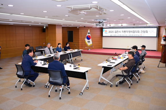 | 배낙호 김천시장은 5월 27일, 시청 2층 회의실에서 김천시 자동차정비협의회(회장 김장록)와의 간담회를 열어 자동차 정비업계의 현장 목소리를 듣고 교통안전 사업 추진을 위한 협력 방안을 모색했다.
