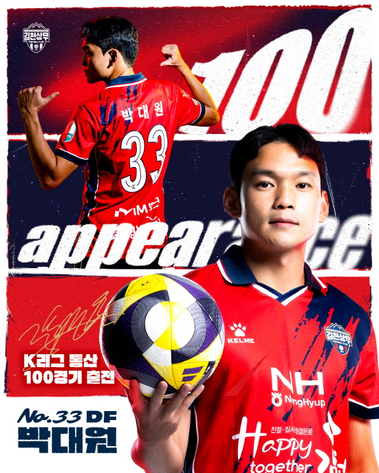 | 김천상무프로축구단(대표이사 이재하, 국군체육부대장 진규상)이 5월 2일, 포항과의 ‘하나은행 K리그1 2025’ 11R에 출전하며 K리그 통산 100경기 출장을 달성했다.