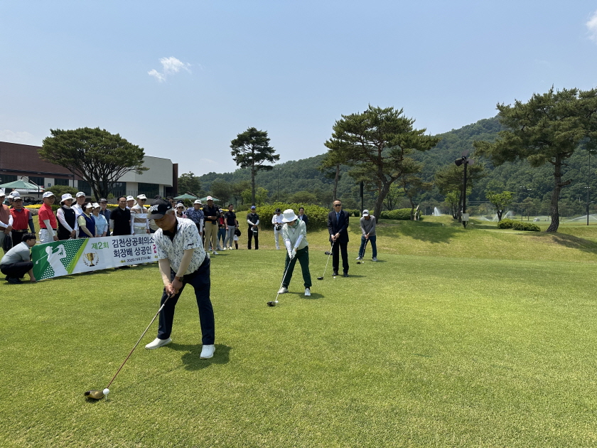 | 김천상공회의소(회장 안용우)는 지난 5월 27일 김천 포도 C.C에서 상공의원과 회원사 대표 및 임원 등이 참석한 가운데 ‘제2회 김천상공회의소 회장배 상공인 친선 골프대회’가 성황리에 개최됐다.