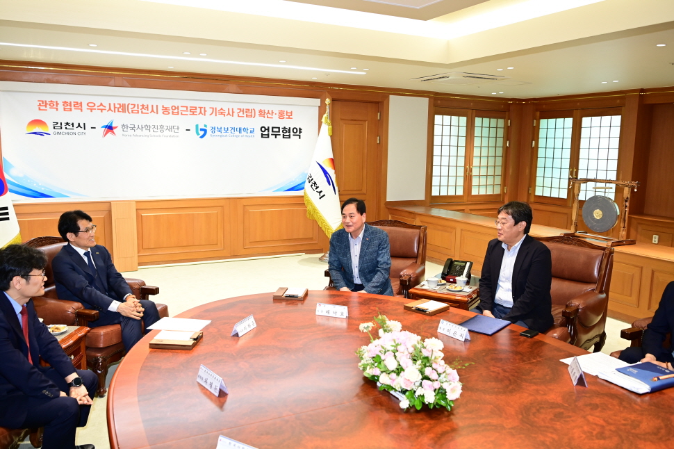 이번 협약은 김천시가 농업 근로자 기숙사 건립 공사 추진 과정에서 교육부 산하 한국사학진흥재단의 우수한 관학 협력 사례로 선정됨에 따라, 타 지자체 확산모델로 홍보하기 위해 각 기관 협의를 거쳐 추진됐다.