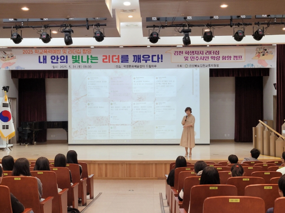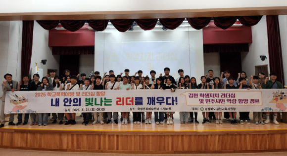 | 경상북도김천교육지원청(교육장 모태화)는 5월 31일 김천학생문화예술센터 드림마루 등에서 초ㆍ중ㆍ고등학교 학생회 임원 53명을 대상으로 ‘내안의 빛나는 리더를 깨우다’2025 학생자치 리더십 캠프 를 실시하였다.