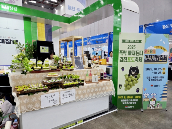 한편, 이날‘2025 경북농식품대전’에서 김천시는 ‘김천 팔맛대장경’ 상품 전시‧시식‧판매, 포도축제 홍보, 뽑기 체험 및 오삼이와 가위바위보 게임 등 다양한 이벤트를 진행했으며, 전통주 특별관에서는 ‘비어카스텔’김천 밀맥주를 홍보했다.