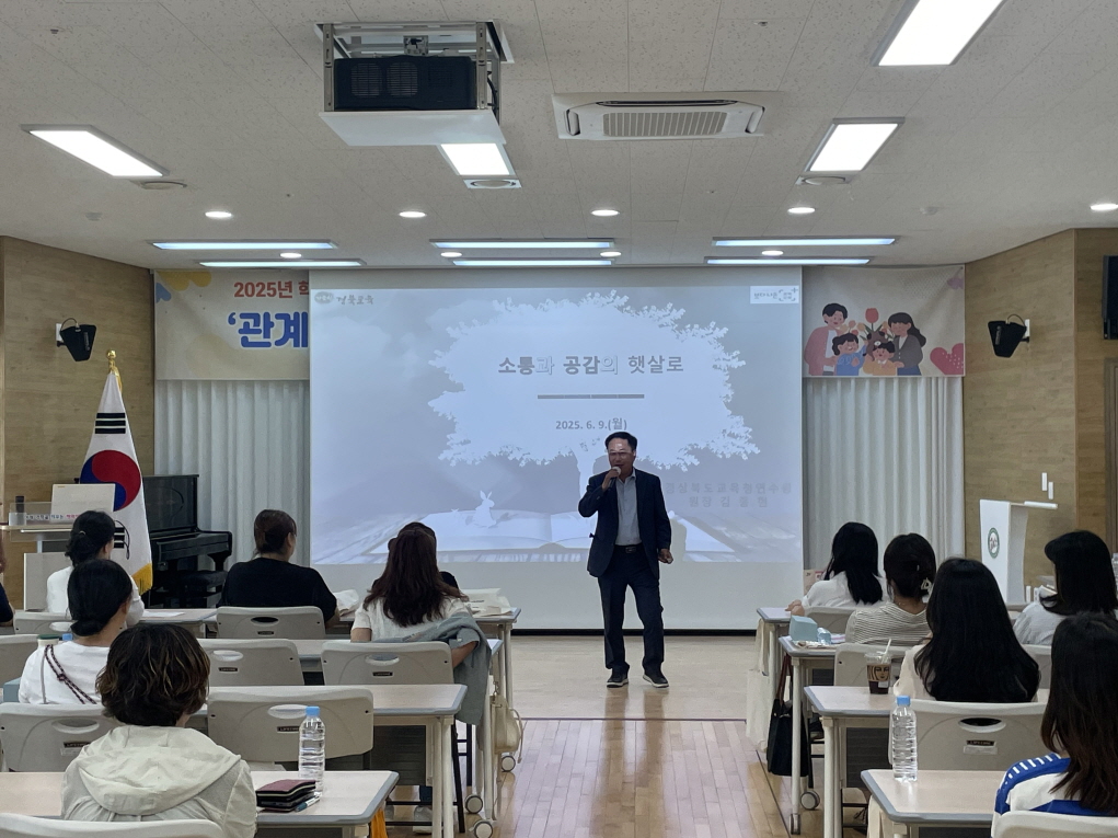 이번 학부모 연수는 경상북도교육청 연수원 김종현 원장을 강사로 초청하여 ‘관계 회복 및 행복한 부모 되기’를 주제로 진행되었다. 가정의 달을 맞아 부모들이 자녀와의 관계에서 느끼는 감정과 스트레스를 어떻게 관리할 수 있을지에 대해 논의하며, 행복한 부모가 되는데 필요한 실용적인 팁과 조언을 제공하는데 초점을 맞추어 진행을 되었다.