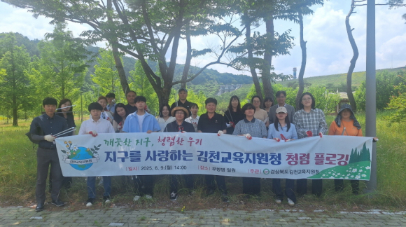 | 경상북도김천교육지원청(교육장 모태화)은 소통을 통해 세대간 갈등요소를 제거하고 유연한 조직분위기 조성을 위하여 6월 9일에 김천 부항댐 일원에서 ‘청렴플로깅’과‘거꾸로 멘토링’을 실시하였다.