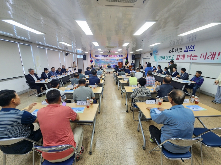 간담회는 ▲국민의례 ▲주요 내빈 소개 ▲인사 말씀 ▲시정 운영 방향 설명 ▲시정 질의 순으로 진행됐으며, 현장에서는 부항면의 발전 방향을 모색하는 다양한 목소리가 오갔다.