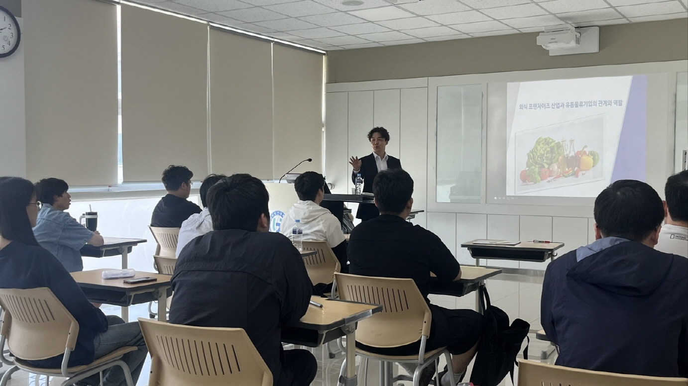 이번 특강에는 김석운 대표이사(뉴통 주식회사)가 연사로 초청되어, ‘국내 식자재 유통물류 기업들의 시장 현황과 외식프랜차이즈 산업과의 관계’를 주제로 강연을 진행했다.