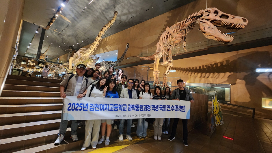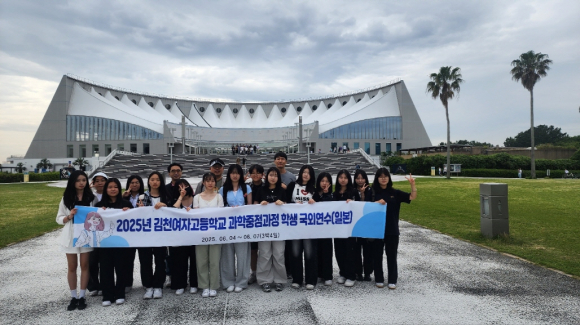 | 김천여자고등학교(교장 정하경)는 6월 4일부터 7일까지 일본 규슈 지역에서 과학중점과정 학생연수를 실시하였다. 2학년 과학중점과정 학생 15명이 참가하여 일본의 다양한 과학 시설을 탐방하면서, 과학적 시야와 사고의 폭을 넓혔다.