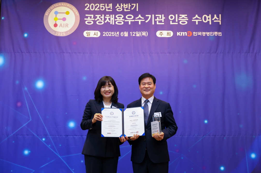 김천시 시설관리공단, 공정채용 우수기관 인증 3년 연속 취득