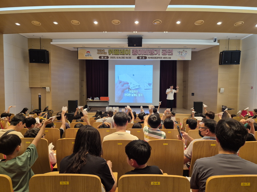 | 김천시는 지난 6월 14일 김천녹색미래과학관 세미나실에서 '위플레이 종이비행기 공연'을 성공적으로 개최했다.