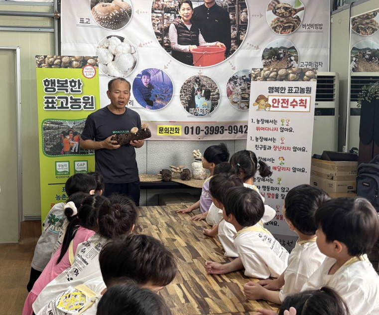 | 정성・존중・협력으로 미소 짓는 행복학교, 김천중앙초병설유치원(원장 김태표)은 6월 18일 표고버섯 농장에서 찾아가는 우리농산물 체험을 실시하였다.