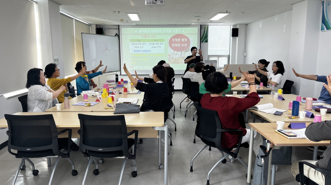 | 김천시평생교육원 여성새로일하기센터에서는 지난 6월 18일 평생교육원 1강의실에서 국비 공모사업으로 추진된 직업교육훈련 『실버케어 실무자 양성 과정』 수료식을 개최했다.