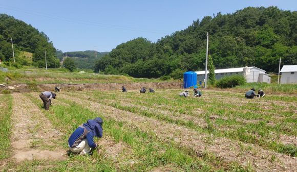 양파밭에 피어난 나눔의 손길, 지례면 일손 돕기