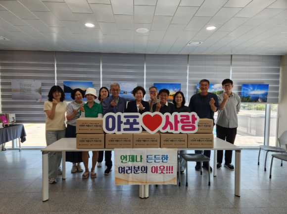 | 김천시 아포읍 지역사회보장협의체(위원장 박석현)는 지난 6월 18일 경북사회복지공동모금회의 지원을 받아 취약계층 9가구에 『시원한 여름나기』 물품을 전달했다.