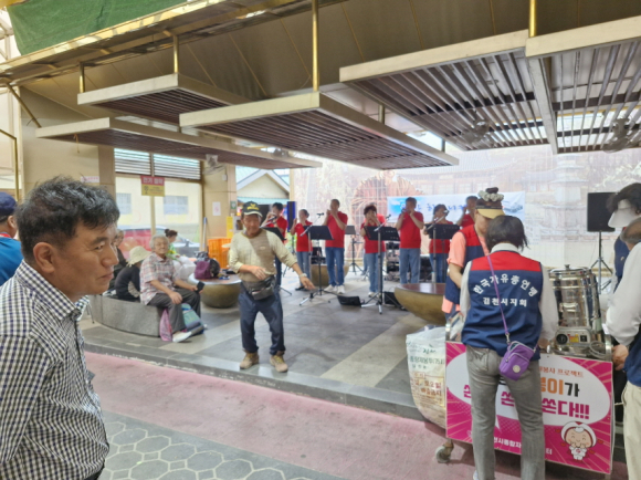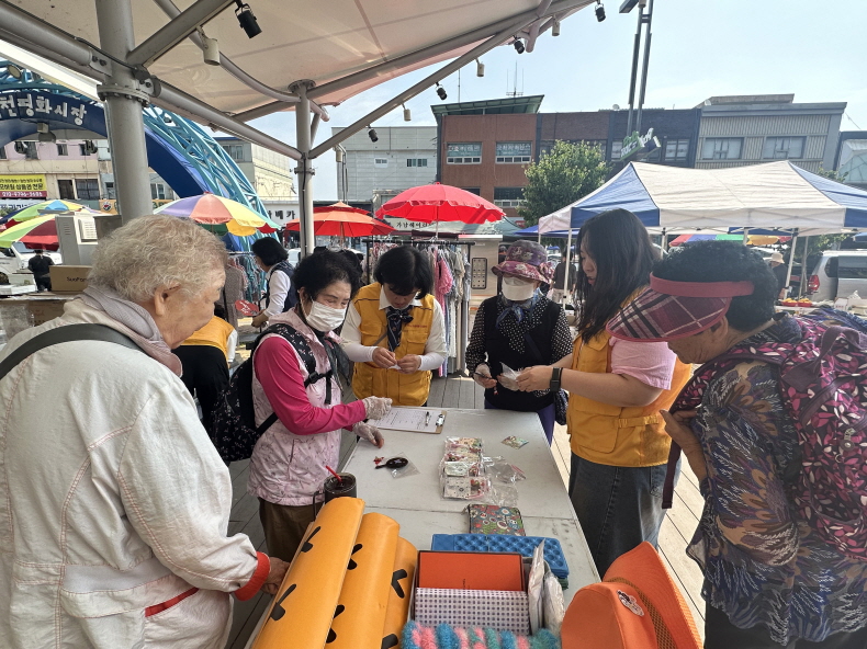 김천시 장날 5일, 10일 평화와 황금시장을 번갈아 가면서 봉사단체별로 적극적으로 동참하여 따뜻한 마음으로 전통시장에 활기를 불어넣는데 최선을 다하였다. 지난 6월에는 재향군인회(회장 이원숙)외, 김천한궁협회(회장 정혜선) 외, 자유총연맹(회장 박외선) 외, 황악하모니카 봉사단(단장 이규홍)등 여러 봉사단체에서 내 일 같이 참여하여 시민들과 기쁨을 공유하였다.