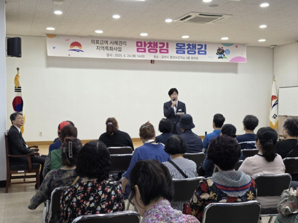 | 김천시(시장 배낙호)는 지난 6월 24일 오후 2시 김천시 중앙보건지소에서 의료기관 다빈도 이용 수급자 중 관리가 필요한 대상자 60명을 선정해 「맘챙김 몸챙김」의료급여 신규사업을 시행했다.