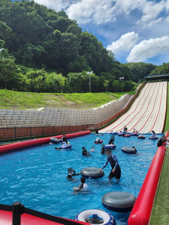 물썰매장은 썰매를 타고 물 속으로 빠지도록 조성된 이색 체험 공간으로, 시원한 물놀이와 재밌는 썰매 체험을 동시에 즐길 수 있다. 특히 올해 새롭게 설치된 ‘에어풀장’은 만 5세가 되지 않아 썰매 이용이 제한된 유아들을 위해 마련된 배려존으로 보호자 1인 동반 입장이 가능하며, 무료로 이용할 수 있다.