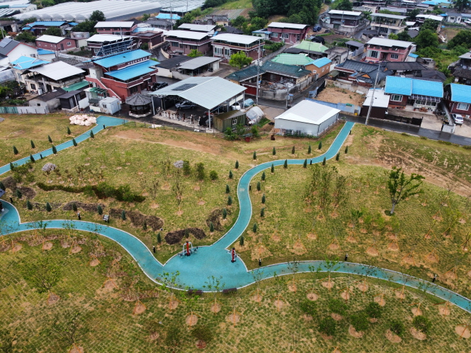 | 김천시 어모면 남산리 김천1일반산업단지 내 조성된 ‘기후대응도시숲’이 지역 주민들 사이에서 큰 호응을 얻고 있다. 기후대응도시숲은 도시열섬현상 완화와 미세먼지 저감은 물론, 주민들에게 도심 속 휴식처를 제공해 만족도를 높이고 있다.