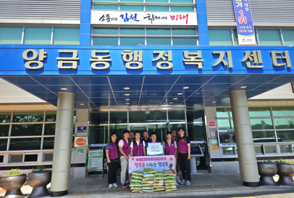 진태술 양금동장은 “지역 주민을 위한 따뜻한 나눔에 진심으로 감사드리며, 기부해 주신 백미는 경로당 어르신들께 잘 전달하겠다.”라고 전했다.
