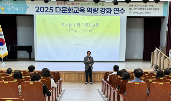 | 경상북도김천교육지원청(교육장 모태화)은 6월 25일 관내 유ㆍ초ㆍ중등 교원을 대상으로 ‘함께 배우고 성장하는 교육기반 조성을 위한 2025 다문화교육 역량 강화 연수’를 마련했다.