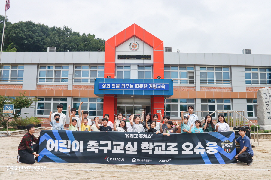 김천상무는 지난 6월 18일과 25일, 다수초와 개령초를 방문하여 학교로 오슈웅 축구교실 행사를 진행했다. 학교로 오슈웅은 관내 학생들을 대상으로 건전한 신체발달과 여가 선용을 위해 김천상무 유소년 코칭스탭이 방문하여 축구를 지도하는 행사로, 김천상무의 사회공헌활동 중 어린이 체육교실과 함께 가장 수요가 높다. 올해도 총 네 번의 행사를 진행했다.