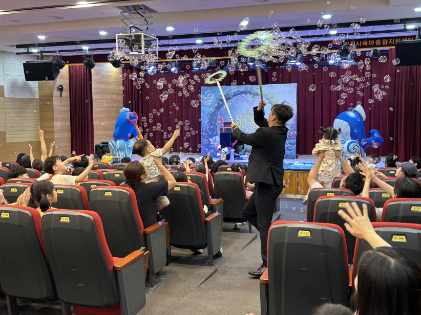 육아종합지원센터는 무더운 여름 영유아 가족에게 즐거운 추억을 선사하기 위해 영유아들의 스테디셀러 공연‘신기한 비눗방울 세상, 버블쇼’를 2회(11시, 14시)에 걸쳐 선보였다.